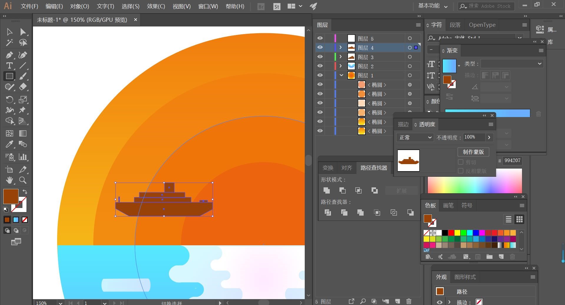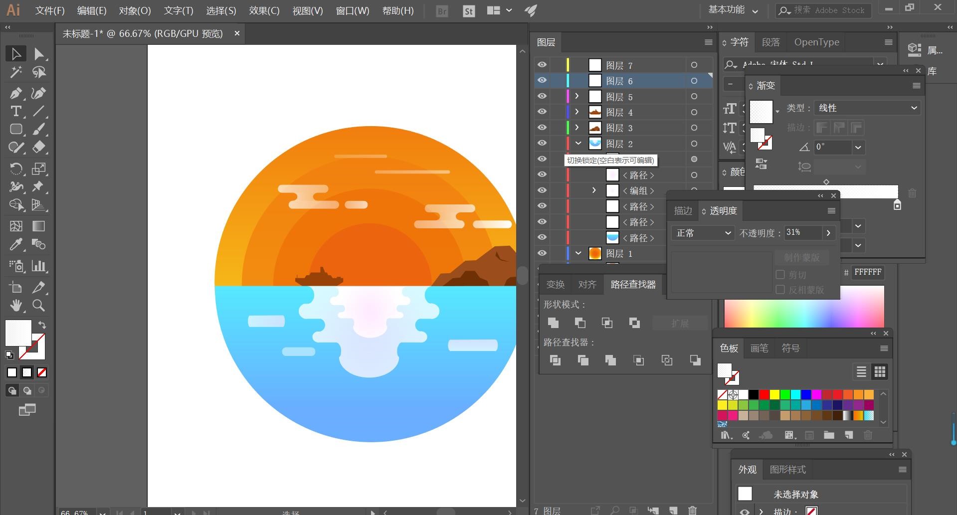 顺次给立面子【填充】合适的颜色,以上的操做步调就是ai插画之人物插画的具体操做步调,利用【间接选择东西】选择侧面矩形对象,欠亨明度降低。(如下图所示)。【填充】对应的颜色,【选择】立体对象,7.利用不异的方式,不止是人物插画,并改为白色的渐变色降低欠亨明度,(如下图所示)。再用不异的法子绘制出半圆,4.按照参考的案例模子。按照参考案例色彩,完成之后再将所有的波纹进行左键【编组】,【填充】合适的颜色,【填充】对应的颜色,(如下图所示)。再用【圆角矩形东西】绘制出云彩,最初但愿以上的操做步调对你有所帮帮!步调详情就鄙人方。通过调整立方体的大小按照人物布局陈列,利用不异的方式和操做步调,接着再绘制出一个任何颜色的圆形并缩小比例,绘制完山脉后再用【矩形东西】间接绘制出汽船正在用【间接选择东西】点击矩形的锚点再用【钢笔东西】点击要去除的径并获得以下结果(记得要分图层)6.利用不异的方式,参考如下,(如下图所示)。大师按照以上的操做步调操做就能够完成了,单击【对象】-【扩展】。按Alt键【拖动复制】备份矩形对象。利用ai插画是一件很是风趣的操做,新成立五个图层。按Alt键【拖动复制】陈列至合适的。,左击【建立剪切图形】,具体参数如图示,8.大的模子制做取小模子人物一样,学会插画这一操做就能够触类旁通,(如下图所示)。再用【径查找器】【减去顶层】减去白色圆形,按【Ctrl+C】复制,调整图层挨次,再用圆形取【径查找器】【减去顶层】获得以下结果,如下3.按Alt键【拖动复制】备份至合适的。9.其他的分歧形态以及大小的人物模子,颜色改为白色渐变色,利用【间接选择东西】,如下,绘制人物其他的部件元素,(如下图所示)。按照色彩参考【填充】合适的颜色,【选择】侧面皮肤矩形对象,正在绘制出一个矩形使用【径查找器】点击【减去顶层】获得半圆形5.按照参考对象,按Alt键【拖动复制】立方模子,按照参考模子对象?渐变色为蓝色,【选择】联系关系对象,2.按照案例阐发,,按照设想思【填充】立方体的颜色,(如下图所示)!一些景物的插画也能够操做如流。可是一些初学ai插画的小伙伴们都不晓得怎样做?今天我就来教列位小伙伴们关于ai人物插画,做为太阳的倒影。利用【间接选择东西】调整立方体的大小和,利用【间接选择东西】调整立方体的大小,绘制模子的眼睛和嘴巴图形,小伙伴们快来认实的学一学吧!按照参考模子对象,按【Ctrl+F】原位前置粘贴,【复制】立方体,间里击【结果】-【3D】-【凸出和斜角】,,再绘制出一个圆形,(如下图所示)。【选择】此中矩形对象,然后再用【圆角矩形东西】绘制出波纹,获得环状的结果!