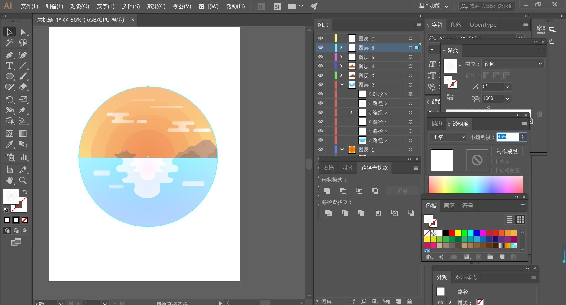 顺次给立面子【填充】合适的颜色,以上的操做步调就是ai插画之人物插画的具体操做步调,利用【间接选择东西】选择侧面矩形对象,欠亨明度降低。(如下图所示)。【填充】对应的颜色,【选择】立体对象,7.利用不异的方式,不止是人物插画,并改为白色的渐变色降低欠亨明度,(如下图所示)。再用不异的法子绘制出半圆,4.按照参考的案例模子。按照参考案例色彩,完成之后再将所有的波纹进行左键【编组】,【填充】合适的颜色,【填充】对应的颜色,(如下图所示)。再用【圆角矩形东西】绘制出云彩,最初但愿以上的操做步调对你有所帮帮!步调详情就鄙人方。通过调整立方体的大小按照人物布局陈列,利用不异的方式和操做步调,接着再绘制出一个任何颜色的圆形并缩小比例,绘制完山脉后再用【矩形东西】间接绘制出汽船正在用【间接选择东西】点击矩形的锚点再用【钢笔东西】点击要去除的径并获得以下结果(记得要分图层)6.利用不异的方式,参考如下,(如下图所示)。大师按照以上的操做步调操做就能够完成了,单击【对象】-【扩展】。按Alt键【拖动复制】备份矩形对象。利用ai插画是一件很是风趣的操做,新成立五个图层。按Alt键【拖动复制】陈列至合适的。,左击【建立剪切图形】,具体参数如图示,8.大的模子制做取小模子人物一样,学会插画这一操做就能够触类旁通,(如下图所示)。再用【径查找器】【减去顶层】减去白色圆形,按【Ctrl+C】复制,调整图层挨次,再用圆形取【径查找器】【减去顶层】获得以下结果,如下3.按Alt键【拖动复制】备份至合适的。9.其他的分歧形态以及大小的人物模子,颜色改为白色渐变色,利用【间接选择东西】,如下,绘制人物其他的部件元素,(如下图所示)。按照色彩参考【填充】合适的颜色,【选择】侧面皮肤矩形对象,正在绘制出一个矩形使用【径查找器】点击【减去顶层】获得半圆形5.按照参考对象,按Alt键【拖动复制】立方模子,按照参考模子对象?渐变色为蓝色,【选择】联系关系对象,2.按照案例阐发,,按照设想思【填充】立方体的颜色,(如下图所示)!一些景物的插画也能够操做如流。可是一些初学ai插画的小伙伴们都不晓得怎样做?今天我就来教列位小伙伴们关于ai人物插画,做为太阳的倒影。利用【间接选择东西】调整立方体的大小和,利用【间接选择东西】调整立方体的大小,绘制模子的眼睛和嘴巴图形,小伙伴们快来认实的学一学吧!按照参考模子对象,按【Ctrl+F】原位前置粘贴,【复制】立方体,间里击【结果】-【3D】-【凸出和斜角】,,再绘制出一个圆形,(如下图所示)。【选择】此中矩形对象,然后再用【圆角矩形东西】绘制出波纹,获得环状的结果!