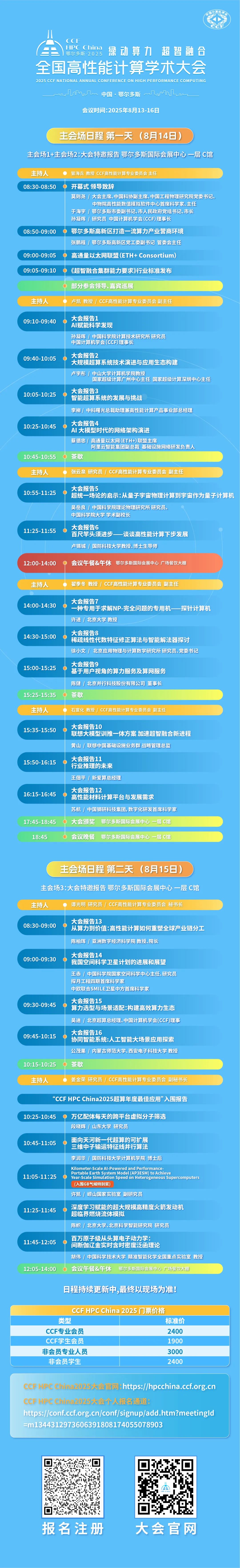 第21届CCF全国高机能计较学术大会(CCFHPCChina2025)将于8月13-16日正在鄂尔多斯昌大举办。对将来超算智算融合的新趋向,涵盖高机能计较机系统布局、高机能计较、大数据并行处置、AI+Science等多个抢手范畴。