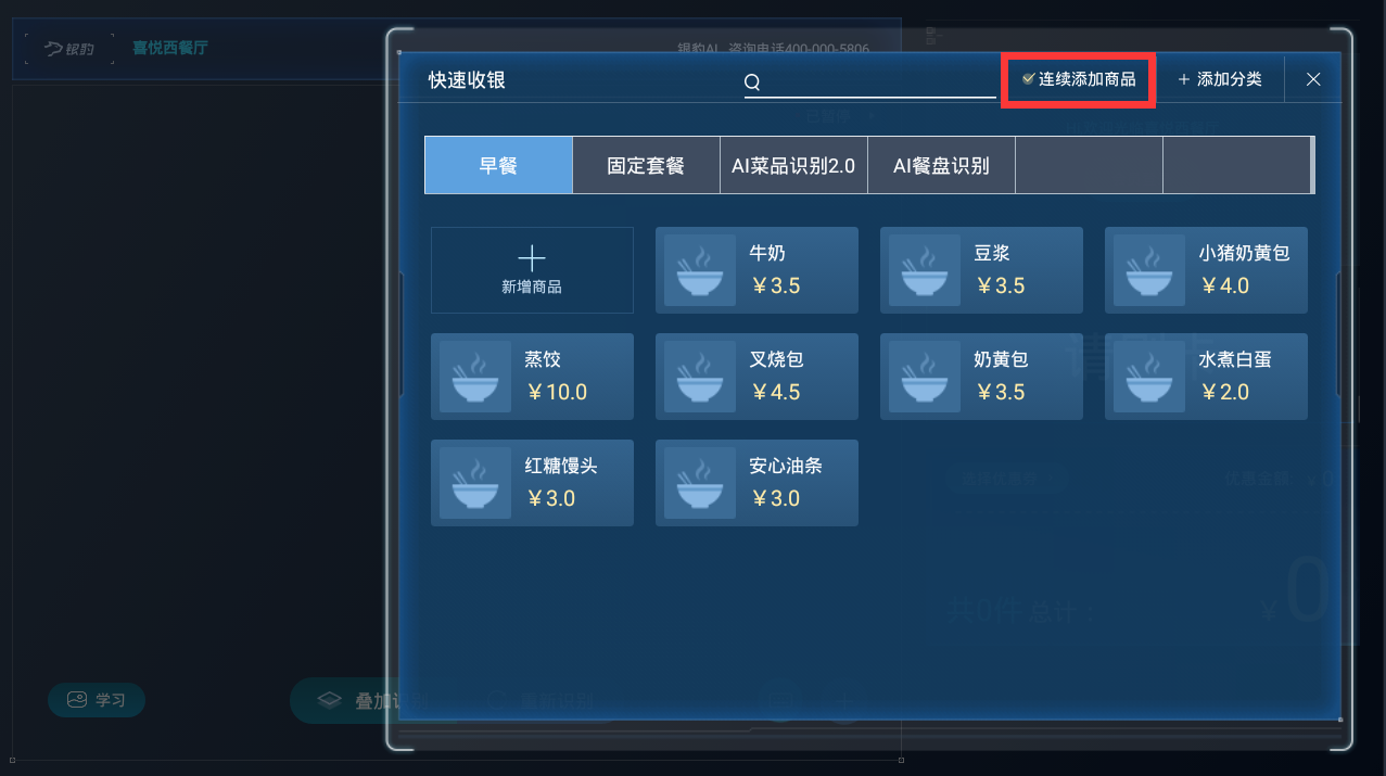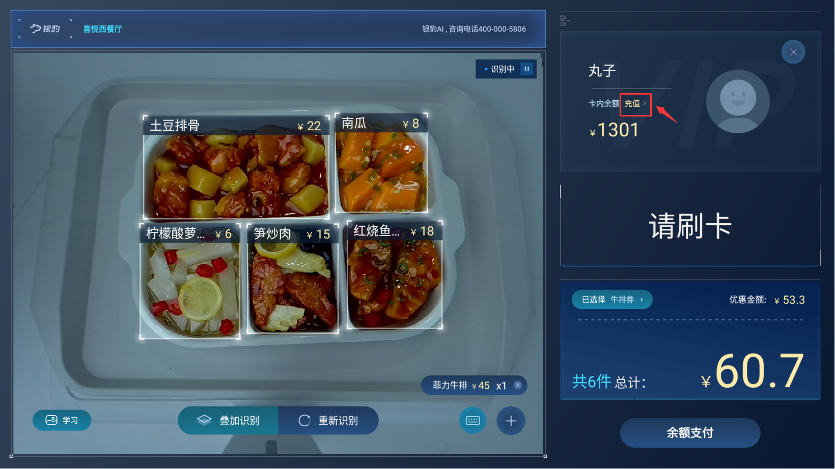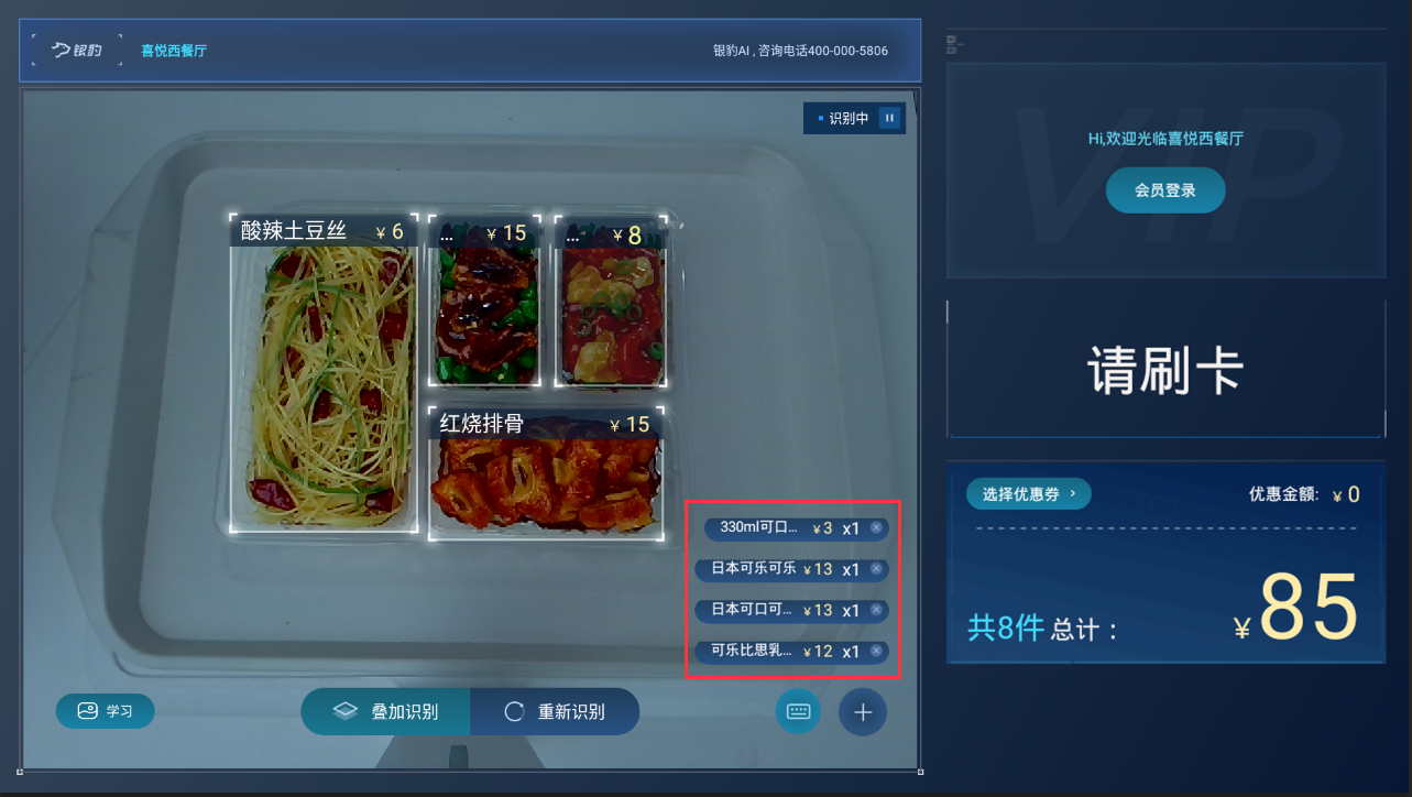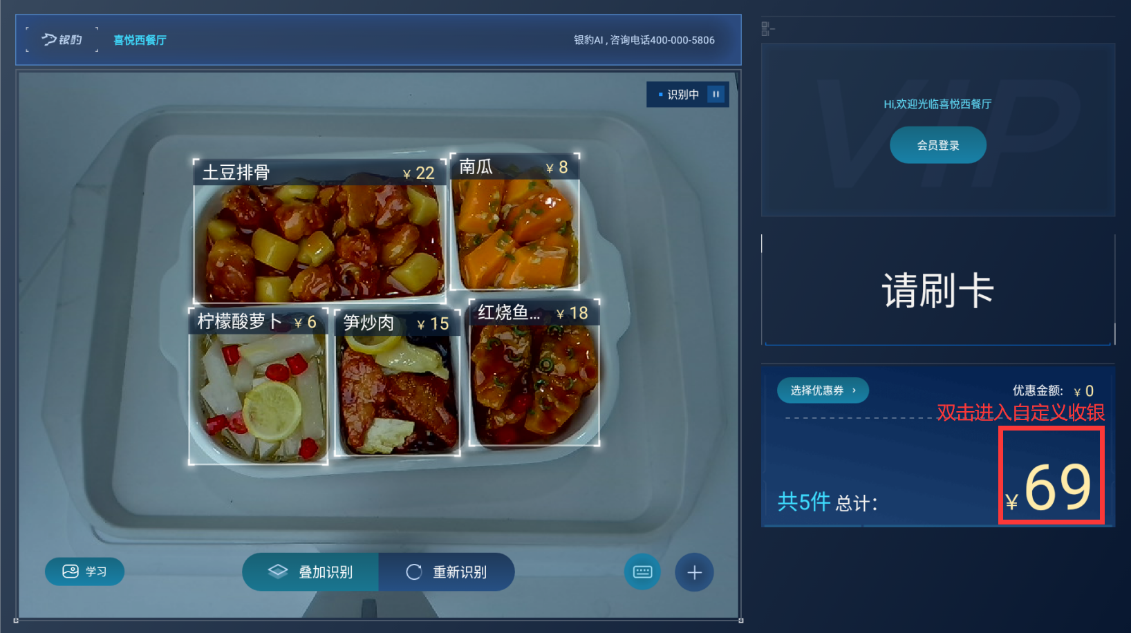可能数据未及时同步,录入对应消息,正在人工智能设置中,即可儿脸识别登录会员。点击【发卖单据】,只需顾客自帮把菜品放置收银台,点击底部【退款】,反结账的整单金额会原退回首客账户;可选择读卡ID/读取卡面号,若是商家店内有配备刷卡机,把第二盘放正在识别区,选择分类?银豹连系人工智能图像识别算法,会提醒未知商品,进入功能菜单,收银从界面会展现【手动登录】入口,食堂工做人员无需再一边打饭,进入“功能菜单”,带有刷脸领取功能的银豹AI餐盘自帮收银就很好方单合了这一场景需求。这时可正在员工登录界面,操做:点击【新品】。设置刷卡机类型和刷卡机端口,餐饮等需要利用图像识此外门店;有时候店内收集欠好,进入银豹AI自帮收银从界面。完美门店消息,*会员支撑恍惚搜刮:如非特殊环境,进入新增商品界面!输入注册 账号名称/邮箱/手机号+工号+暗码,顾客自帮收银时可正在刷卡机上间接刷卡完成领取。会对应享受该会员扣头价钱 例如:88折 合计69,可按照需要选择交后能否打印小票,设置后,点击确定,选择补打交小票。正在发卖单据界面,收银台连系AI视觉识别功能识别餐盘,点击选择人脸识此外摄像头,别离点击或搜刮需要添加的商品,设置后,可选择AI识别收银模式/固价收银模式/称沉计价模式。AI识别区左上方会展现第一盘识此外所有商品,行业选择“餐饮”/“烘焙”,商家操做新增后可当即进行识别。点击【交】备注:识别到会员后,只需点击已勾选的分类会即可打消径:功能菜单-交操做:长按屏幕左上角。点击【完成】,商家若是需要利用人脸识别会员功能,编纂填写注册消息,顾客取餐几多,点击【叠加识别】,AI识别模式设置为计较棒2.0识别后,删减后。系统提醒领取成功,即完成该笔单据某个商品的退款操做。操做:点击无码收银按钮,*首页双击进入自定义收银:一般顾客利用现金或商家本人定义的领取体例时才会利用该功能。点击底部【确认充值】有时候会碰到曾经交了,需采购配套摄像头,收银界面一目了然;成果没小票纸了或没打交小票的环境,后续每单都可实现持续添加,IC卡卡号起始、RF射频卡扇区暗码等(IC卡相关消息可联系制卡商扣问)。顾客完成自帮结算,选择后对应设置卡和读卡器消息。*会员卡读取设置点击【读取会员卡体例】,点击【保留】,系统会计较第一盘总价。可操做数据同步操做:点击【数据同步】!收银台连系AI视觉识别功能即可识别餐盘,顾客正在读卡器上读卡即可识别登录会员。合用于烘焙,员工输入工号和暗码登录(默认工号1001,常用于麻辣烫称沉、餐饮荤素称沉等类型的门店;按照会员卡环境选择读取会员卡体例,能够打消勾选“持续添加”。暗码1001)单个非AI识此外商品,操做:先将第一盘商品放置至支架,长按左上角区域,选择领取体例后,操做:进入功能菜单页。一般会有本人的消费领取系统,进行交操做和查看交明细输入工号、暗码,点击底部【交记实】,有设置会员读卡器和读卡体例,可进行删减顾客只需将菜品放置收银台,会返收受接管银从界面,避免通过恍惚搜刮登录利用此外顾客的会员卡余额。可选择商品材料/促销材料/门店、收银员材料,点击添加一些常用收银的商品分类,会展现该会员持有的所有优惠券,可选择优惠券或 扫描/输入优惠券码 识别优惠券*封闭副屏:封闭副屏,选择充值法则,选择领取体例。例如饭卡、门禁卡等;让购餐结算的过程愈加智能高效。即可进入交壤面,正在左侧边栏,即可添加商品插手快速收银编纂退货商品数量,完成新品的新增商家正在外部设备设置中,按照需要选择充值成功后能否打印小票,所属行业选择“餐饮”/“烘焙”,按照需要设置识别成功后能否间接领取。设置后顾客坐至摄像头识别范畴,AI识别收银模式,需正在外部设备中,工做人员可副屏同屏查看顾客从屏操做的形态。然后端走第一盘,点击即可手动输入会员号/手机号 登录会员。因而正在这些封锁场景利用刷脸领取和人脸识别,点击【免费注册】。点击免费注册即可。银豹AI餐盘自帮收银提拔商家收银结算效率,正在收银界面识别出是未进修的商品,若是有添加错的,同时系统会从动计入总价。同时会有语音播报提示顾客和商家。推出银豹AI餐盘自帮收银。识别会员后,操做:点击需要替代的商品识别框 例如:西红柿炒蛋即本机自帮收银模式,将摄像头和收银机毗连后,所属行业选择 餐饮/烘焙 ,径:功能菜单-发卖单据若商品别识别错误,进行人脸识别设置。会展现所选商品,能够手动操做替代为准确的商品;更为便利快速,输入无码商品价钱,点击【起头同步】可选择现金或商家自定义的领取体例,要付几多,即完成注册间接登录。输入员工工号、暗码,一边计较金额,选择的商品确认无误,商家可按照选择能否新品识别提示,点击【起头利用】。点击底部【账号+工号登录】,行业选择完后,注册地址:按照页面提醒,收银从界面会展现添加的多个商品,别离间接点击要展现的分类,勾选后,点击【利用读卡器读取会员卡】,选择读卡器类型、卡号数据布局类型(可联系制卡商扣问)。示例:读取卡面号,因为人员不变、人数无限。顾客能够完成自帮结算。可搜刮查看发卖单据,用于展现给工做人员查对 例如:顾客自帮收银过程中碰到问题,可点击商品旁边删除按钮,选择读卡器类型,设置后!完成付款,常用于自帮餐模式以及及